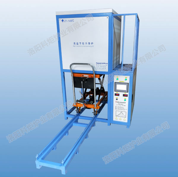 高溫升降爐結構,裝料臺有軌道移出到指定位置進行裝料卸料工件堆放在工作臺上,上下電動傳動,爐門上下按鈕開關電動控制;爐膛四面加熱,爐溫均勻性非常好,的爐膛材料和穩定的溫度控制系統。爐襯采用輕質氧化鋁纖維板拼裝而成的爐體,爐底采用輕質保溫磚和重質可承重耐火磚砌筑,爐門車采用機械傳動