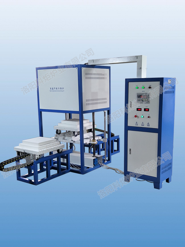 高溫升降爐結構,裝料臺有軌道移出到指定位置進行裝料卸料工件堆放在工作臺上,上下電動傳動,爐門上下按鈕開關電動控制;爐膛四面加熱,爐溫均勻性非常好,的爐膛材料和穩定的溫度控制系統。爐襯采用輕質氧化鋁纖維板拼裝而成的爐體,爐底采用輕質保溫磚和重質可承重耐火磚砌筑,爐門車采用機械傳動